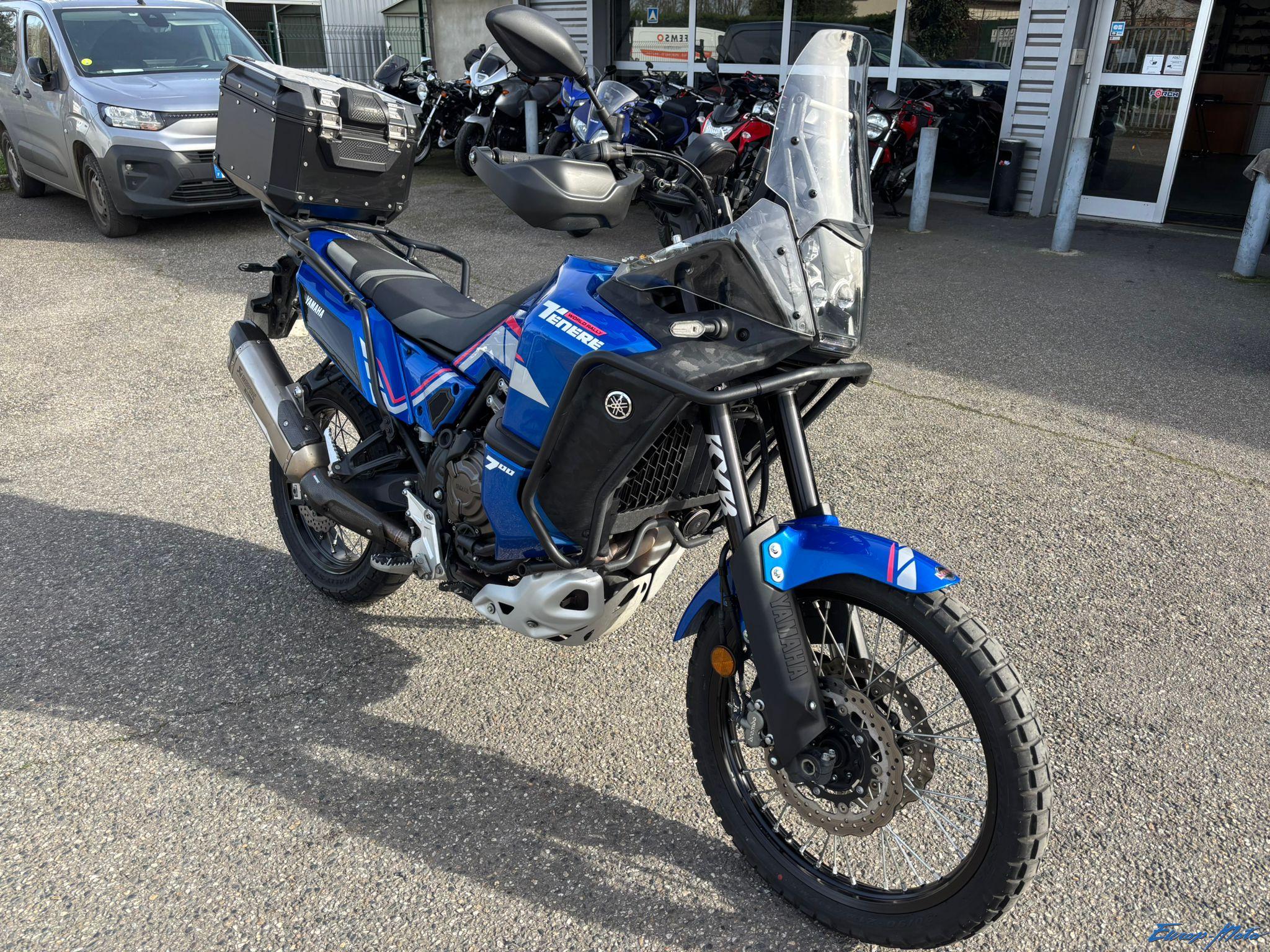 Equipée d’un top case Yamaha, crash bar, pot Akrapovic titane, sabot moteur, fourche Kayaba, amortisseurs de direction Ohlins, abs 3 modes…